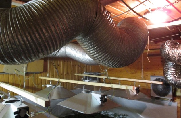 Nach einem Zeugenhinweis betraten Polizeibeamte am Samstagabend (17. Oktober) um 21:00 Uhr die Kellerräume eines Hauses an der Römerstraße. In zwei Räumen verteilt war eine professionelle Be- und Entlüftungsanlage eingebaut (siehe Fotos). Das Kriminalkommissariat 13 in Hürth übernahm die weiteren Ermittlungen. Ein Strafverfahren wegen des Verdachtes des illegalen Handels mit Cannabis wurde eingeleitet. (bm)