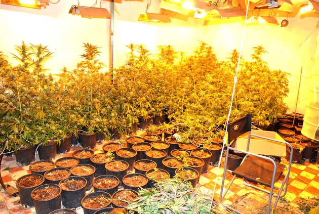 Ermittlungen führten die Beamten des zuständigen Kriminalkommissariats 13 zu einem 48-Jährigen Mann aus Köln. Die Beamten setzten einen richterlichen Durchsuchungsbeschluss am 28. November in seinem Haus im Ortsteil Erp um. Dort fanden sie zwei als Plantagen genutzte Räume vor. In diesen stellten sie 456 Cannabispflanzen und weitere 223 Töpfe mit Erdreich, in denen sich zuvor weitere Cannabispflanzen befunden haben, sicher. Der 48-Jährige zog die Pflanzen professionell auf und hatte einige zum Teil geerntet. In dem Haus in Erp und bei einer anschließenden Durchsuchung seiner Wohnanschrift in Köln (-Neustadt) stellten die Beamten zudem über acht Kilogramm bereits geerntetes Marihuana, über 400 g Haschisch und eine vierstellige Bargeldmenge sicher. Den Täter nahmen sie vorläufig fest. Das Ermittlungsverfahren dauert an.