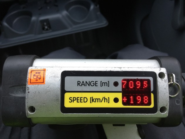 Der Verkehrsdienst der Polizei kontrollierte am Donnerstag (16. November) am Vormittag die Geschwindigkeit auf der Landesstraße 496 in Kerpen in Höhe der Autobahnanschlussstelle Türnich. Ein 26-jähriger Kerpener fuhr mit seinem Auto auf der Strecke, auf der 100 km/h erlaubt sind mit gemessenen 198 km/h. Den Fahrer erwartet nun ein Bußgeld in Höhe von 1200 Euro, Zwei Punkte im Verkehrszentralregister und ein dreimonatiges Fahrverbot. (Das beigefügte Bild zeigt die Anzeige des Lasermessgerätes)