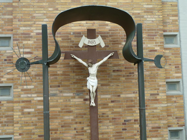 Von dem Kreuz vor dem Haupteingang der St.-Wendelinus-Kirchengemeinde entwendeten Unbekannte Kupferornamente.