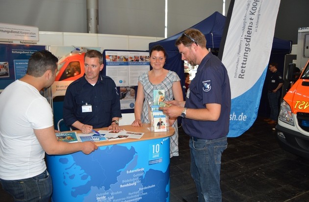Sechs Tage lang hat die Rettungsdienst Kooperation in Schleswig-Holstein (RKiSH) den ca. 157.000 Besuchern der Interschutz 2015 in Hannover einen Eindruck von ihrer Arbeit gegeben. Vor allem ein Trainings-Rettungswagen (T-RTW), der in einer der Hallen auf der internationalen Leitmesse für Brand- und Katastrophenschutz, Rettung und Sicherheit ausgestellt war, fand ein reges Interesse. "Wir hatten an unserem Stand sogar Gäste aus Indien und aus arabischen Ländern", berichten die RKiSH-Mitarbeiter.