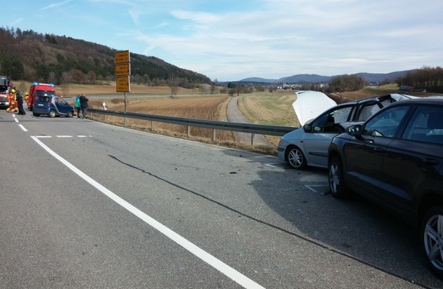 POL-FR: Klettgau-Geißlingen. Schwerer Unfall auf der B 34 mit drei beteiligten Fahrzeuge, fünf Personen zum Teil schwer verletzt