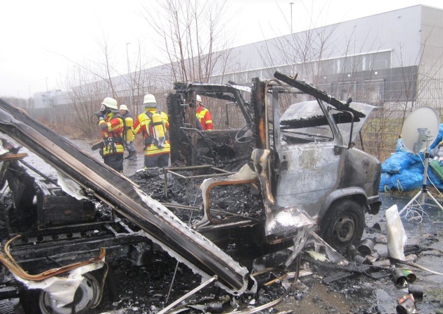 Was am Montagmittag, 06. März, zunächst als Gebäudebrand eines Firmengebäudes in der Bad Krozinger Straße im Gewerbepark Breisgau über Notruf gemeldet wurde, entpuppte sich schließlich als Fahrzeugbrand. Gegen 14.30 Uhr rückten aufgrund der Erstmeldung rund 12 Fahrzeuge besetzt mit 60 Mann der Feuerwehren Hartheim, Eschbach, Heitersheim und Feldkirch zu dem Brand aus. Vor Ort zeigte sich jedoch, dass ein Wohnmobil in Brand geraten und hierdurch völlig zerstört wurde. Die Feuerwehren konnten erfolgreich ein Übergreifen der Flammen auf das benachbarte Firmengebäude verhindern. Möglicherweise kommt eine explodierte Gasflasche als Ursache in Frage. Das Wohnmobil war glücklicherweise nicht bewohnt und es kamen keine Personen zu Schaden. Insgesamt entstand Sachschaden in Höhe von mehreren Tausend Euro.