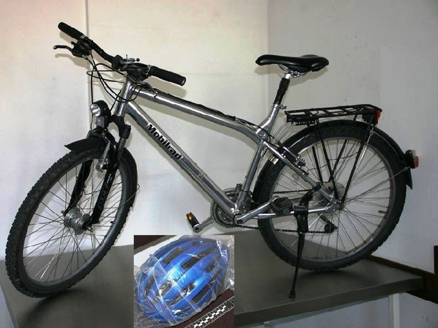 -Wem ist zur fraglichen Tatzeit (17.15 Uhr) oder zuvor eine Person aufgefallen die mit dem abgebildeten Fahrrad und Helm unterwegs war?