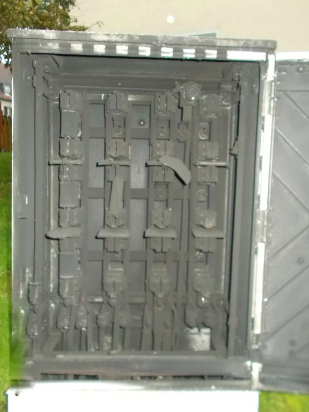 Zwei Anwohner bemerkten ein lautes zischen am Stromverteiler und offene Flammen. Daraufhin alarmierten sie sofort die Feuerwehr. Bei Eintreffen war nur noch eine leichte Rauchentwicklung zu sehen. Die Feuerwehr stellte einen Pulverlöscher und ein Strahlrohr zur Sicherheit bereit, während die Stadtwerke die Tür vom Stromverteiler öffnete. Der Verteilerkasten ist durch den Brand schwer beschädigt worden. Die Stadtwerke arbeiten aktuell an dem beschädigten Stromverteiler. Es wird kontrolliert welche Baugruppen repariert werden können und wie die Umschaltungen gesetzt werden. Für eine noch unbekannte Zeit sind ca. 60 Haushalte stromlos. Die Stadtwerke bemühen sich den Strom für die Haushalte schnellstmöglich wieder herzustellen.