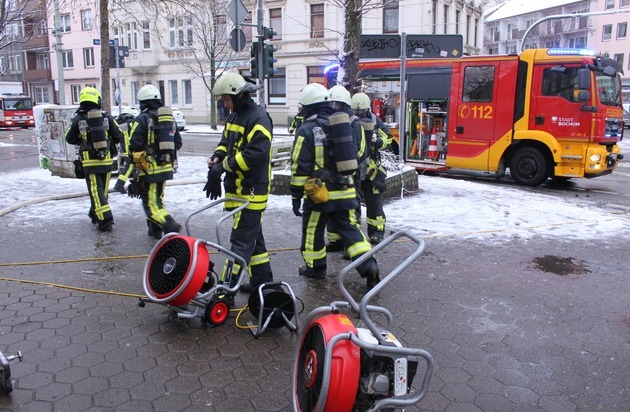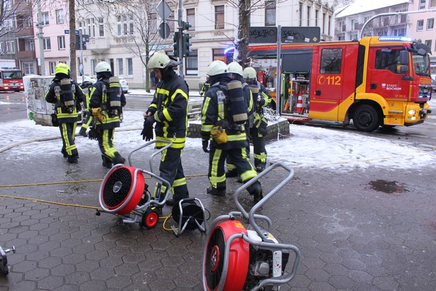 Am Samstagvormittag meldeten gegen 10.19 Uhr mehrere Bewohner eines mehrgeschossigen Wohn- und Geschäftshauses eine Rauchentwicklung im Treppenraum. Zudem sei der Alarmton von Rauchwarnmeldern hörbar. Die Feuerwehrleitstelle alarmierte umgehend den zuständigen Löschzug der Innenstadtwache. Beim Eintreffen der Einsatzkräfte wurde Feuerschein und Rauch in dem Kosmetikstudio im Erdgeschoss festgestellt. Da die Zugangstüren besonders gesichert waren, musste sich die Feuerwehr gewaltsam über ein Fenster den Zugang zur Brandstelle verschaffen. Während der Löscharbeiten wurde gleichzeitig der Treppenraum nach Personen kontrolliert und mit dem Hochleistungslüfter entraucht. Alle Bewohner konnten ihre Wohnungen unverletzt verlassen und wurden während des Einsatzes vom Rettungsdienst betreut. In dem Kosmetikstudio befand sich keine Person. Das brennende Mobiliar im Wartebereich des Ladenlokals wurde von zwei Atemschutztrupps mit einem C-Rohr gelöscht. Alle Räume des Studios waren verraucht, so dass intensive Lüftungsmaßnahmen erforderlich wurden. Im Einsatz waren 35 Einsatzkräfte der Berufsfeuerwehr und des Rettungsdienstes. Nach einer Stunde war der Einsatz beendet. Zur Brandursache hat die Polizei Bochum die Ermittlungen aufgenommen.