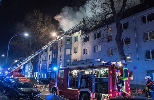 Um 3.33 Uhr meldeten Anwohner aus dem gegenüberliegenden Gebäude Flammenschein aus dem Dach des viergeschossigen Mehrfamilienhauses. Beim Eintreffen des Löschzuges der Innenstadtwache brannte das Dach des Gebäudes bereits in voller Ausdehnung. Flammen schlugen meterhoch in den Nachthimmel, Dachziegel zerplatzten und viele auf den Gehweg und der Brand drohte auf die Nachbargebäude überzugreifen. Da sich viel der Bewohner des Hauses noch in ihren Wohnungen befanden, wurden diese zunächst durch die Einsatzkräfte in Sicherheit gebracht. Die Bewohner des ausgebauten Dachgeschosses hatten sich glücklicherweise bereits selbst gerettet. Alle Bewohner blieben unverletzt und wurden in einem Bus der Bogestra untergebracht und betreut. Auch die Bewohner der Nachbargebäude wurden vorsichtshalber in Sicherheit gebracht und ebenfalls betreut.