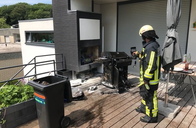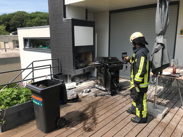 Gegen 12:30 Uhr wurde die Feuewehr Bochum zu einem brennenden Gasgrill im Stadtteil Stiepel alarmiert. Als die Einsatzkräfte an der Einsatzstelle eintrafen war der Grill bereits durch den Eigentümer gelöscht worden. Die Feuerwehr kühlte anschließend die Gasflasche und kontrollierte diese und den betroffenen Bereich der Terasse mit einer Wärmebildkamera. Zum Glück blieb der Brand auf den Grill beschränkt und hatte sich nicht weiter ausgebreitet. Der Besitzer erlitt jedoch leichte Verbrennungen im Gesicht und wurde durch den Rettungsdienst erstversorgt und anschließend in ein Krankenhaus transportiert. Der Grill wurde durch das Feuer volständig zerstört.