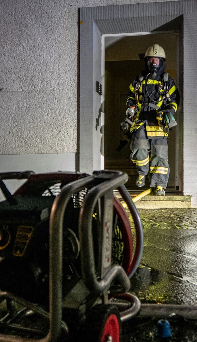 Den Brand selbst konnten die Einsatzkräfte schnell mit einem Strahlrohr unter Kontrolle bringen. Es brannte ein Zimmer der Wohnung, die nach dem Brand vorläufig unbewohnbar ist.