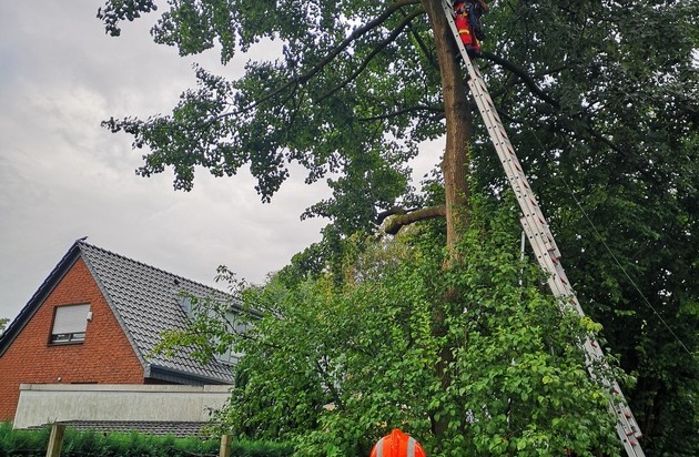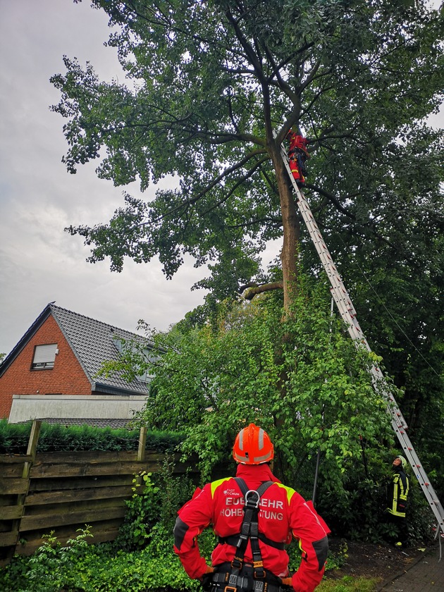 Am heutigen Mittwoch den 11.07.2018 wurde der Feuerwehr Bochum ein angebrochener Ast in einem Baum gemeldet. Der Ast drohte auf den einzigen Zugang eines Mehrpersonenhauses zu fallen. Der Ast befand sich in ca. 18 m Höhe und konnte weder mit der Kraftfahrdrehleiter, bedingt durch die fehlende Aufstellfläche für das Fahrzeug, noch mit tragbaren Leitern erreicht werden. Aufgrund der Gefahrenlage wurde der Ast von den Höhenrettern der Feuerwehr Bochum entfernt.