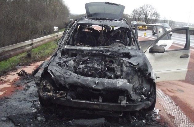 Heute gegen 15:45 Uhr fing ein PKW auf der Autobahn 45,Fahrtrichtung Bochum, nach einem Motorplatzer Feuer und brannte fast vollständig aus. Dabei entstand ein nicht unerheblicher Umweltschaden. Als die Einsatzkräfte der nahe gelegenen Feuerwache 8 (Eichlinghofen) eintrafen, brannte das ehemalige Taxi bereits in voller Ausdehnung und konnte schnell abgelöscht werden.