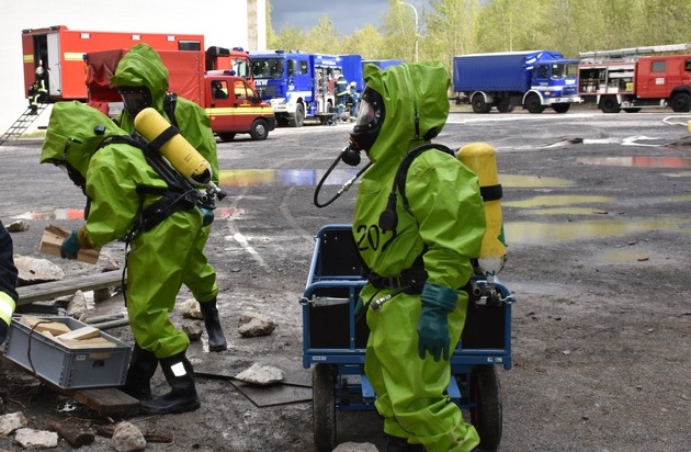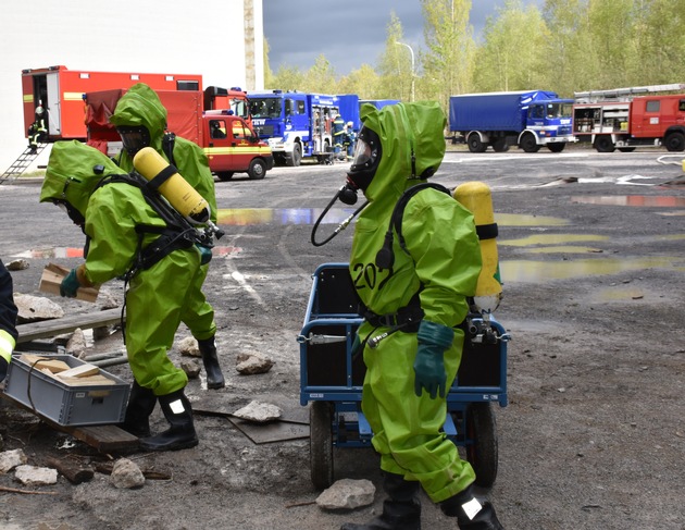 Am Samstagvormittag (23.04.16) fand eine gemeinsame Übung der Feuerwehr, des Technischen Hilfswerkes und der Schnelleinsatzgruppe des Deutschen Roten Kreuz auf dem Gelände des E.ON Kraftwerk Knepper in Dortmund-Oestrich statt. Schwerpunkte der Übung waren dabei die technische und medizinische Rettung von mehreren verletzten Personen nach einer Gasexplosion auf dem Firmengelände sowie die Dekontamination (Reinigung) von Patienten und Einsatzpersonal nach einem simulierten Gefahrstoffaustritt. Um das Szenario so realistisch wie möglich zu gestalten, setzte die Übungsleitung eine Gruppe von realistischen Unfalldarstellern (RUD-Team)der DLRG-Unna ein. Diese waren mit verschiedenen Verletzungsmustern so gut geschminkt, dass selbst erfahrene Retter schnell vergaßen, dass es sich hier "nur" um eine Übung handelte. Auch der Ablauf der Übung war durch das Organisationsteam gut vorbereitet. So mussten zunächst mehrere Personen am Schadensort unter Vollschutzanzügen gerettet werden. Hier wurde auch schweres technisches Gerät eingesetzt, da die Personen teilweise unter Trümmerteilen begraben lagen und sich nicht so einfach befreien ließen. Da alle Personen dann noch mit einem Gefahrstoff in Berührung gekommen waren, mussten zunächst alle zur Entfernung des Gefahrstoffes durch ein Duschzelt geführt werden, bevor sie weiter medizinisch behandelt werden konnten. Dies betraf auch die ersteingesetzten Feuerwehrkräfte, die am Anfang nur mit ihrer normalen Feuerwehrschutzkleidung und Atemschutzgeräten ausgerüstet waren. Jeder einzelne Übungsschritt wurde dabei von mehreren Schiedsrichtern genau beobachtet. Ein weiterer wichtiger Bestandteil der Übung war auch das gemeinsame Zusammenarbeiten der verschiedenen Organisationen im Rahmen der Gefahrenabwehr an der Einsatzstelle. Es waren somit nicht nur verschiedene Organisationen beteiligt, sondern auch eine Durchmischung von Helfern aus dem Ehren- und Hauptamt gegeben. Als Ergebnis hat sich hier wieder einmal deutlich bestätigt, dass dies für die Bewältigung der Übungslage keinerlei Probleme ergab, da das gemeinsame Arbeiten Hand in Hand von Ehren- und Hauptamt sowie der verschiedenen Organisationen bereits gelebte Praxis in alltäglichen Einsatzsituationen ist. Am Ende der Übung ist natürlich auch nicht alles glatt gelaufen, die Beobachtungen der Schiedsrichter werden nun noch mal genau ausgewertet und dann in den nächsten Wochen bei einer Nachbesprechung präsentiert - an der Zusammenarbeit der verschiedenen Organisationen hat es zumindest nicht gelegen.