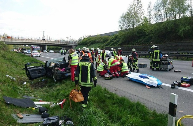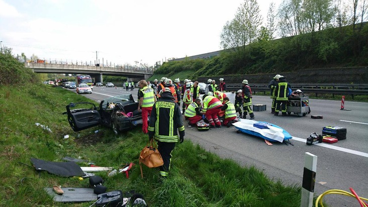 Gegen 13:30 Uhr wurde die Feuerwehr Dortmund am heutigen Maifeiertag zu einem Verkehrsunfall auf der BAB 2 kurz hinter dem Autobahnkreuz Nord/Ost alarmiert. Ein PKW war aus bislang ungeklärter Ursache von der Fahrbahn abgekommen und hatte sich mehrfach überschlagen.