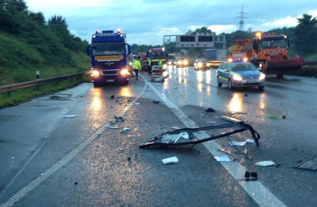 Der Bus kam nach cirka 150 Metern zum Stehen. Das Trümmerfeld erstreckte sich über mehrere hundert Metern und über alle Fahrspuren.