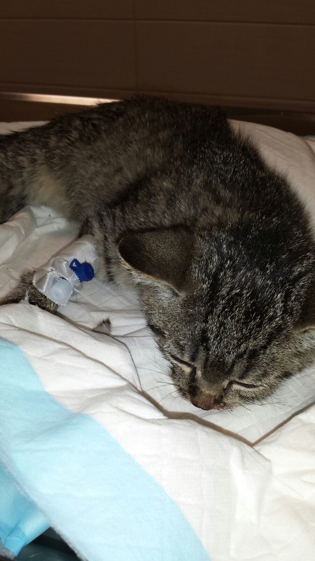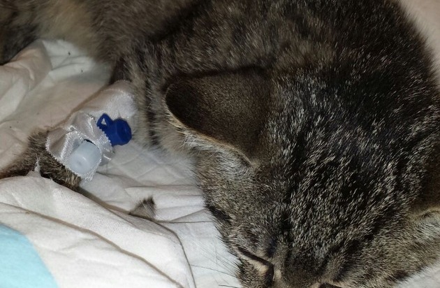 Leider überlebte eine der beiden Katzen die Nacht nicht. Das überlebende Katzenbaby wird nach seiner Genesung wieder an seine Besitzer übergeben werden.