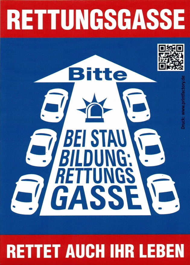 Immer wieder kommt es zu langen Staus nach Verkehrsunfällen auf Autobahnen, Bundes- und Landstraßen. Oftmals ergeben sich Zeitverzögerungen von bis zu vier Minuten für die anrückenden Fahrzeuge von Polizei, Feuerwehr und Rettungskräften, weil die Rettungsgasse durch viele Autofahrer erst gebildet wird, wenn die Einsatzkräfte im Spiegel zu sehen sind. Um diese, in manchen Fällen, lebensrettende Maßnahme noch besser in den Köpfen der Autofahrer zu etablieren hat sich auch der Gesetzgeber mit diesem Thema auseinander gesetzt.Am 14.12.2016 tritt die Erste Verordnung zur Änderung der Straßenverkehrsordnung in Kraft. Hieraus ergibt sich eine für Feuerwehr, Rettungsdienst und Polizei sehr wichtige Änderung.