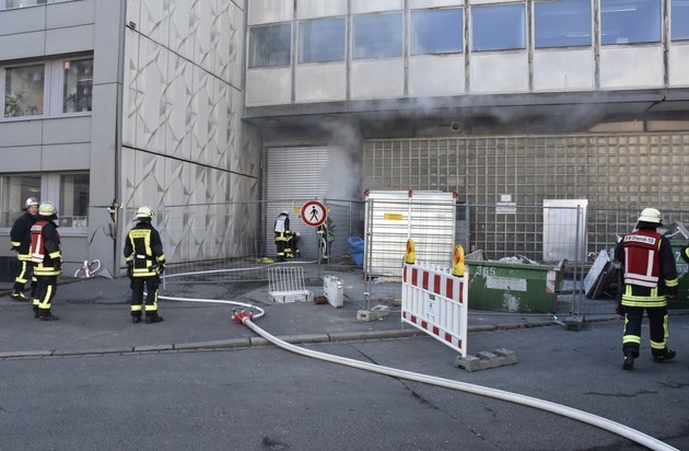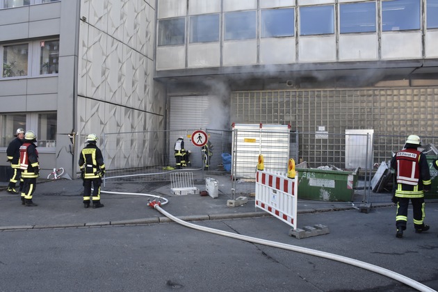 Der an der Fassade aufsteigende Rauch, der im Innenstadtbereich auch zu einer starken Geruchsbelästigung führte, drang durch geöffnete Fenster in das Gebäude ein. Der Treppenraum und weitere betroffene Räumlichkeiten wurden durch weitere Trupps unter Atemschutz kontrolliert. Da die verbaute Klimaanlage sofort abgeschaltet wurde, konnte sich der Rauch glücklicherweise nicht im ganzen Haus verteilen. Zur Entrauchung des Gebäudes wurde die Rauch- und Wärmeabzugsanlage eingeschaltet und mehrere Hochleistungslüfter eingesetzt. Durch die frühzeitige Räumung des Objektes bestand zu keiner Zeit Gefahr für Personen.