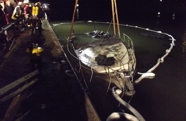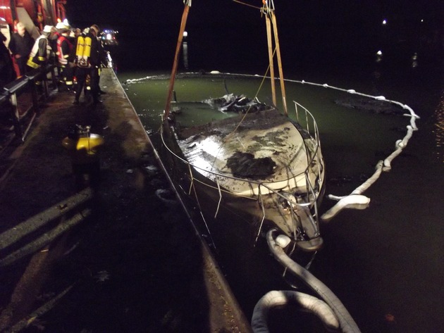 Aus noch unbekannter Ursache brannte eine etwa 17 Meter lange Motorjacht im Catroper Jachthafen. Infolge dessen sank die Jacht und war mit Technischem Gerät der Feuerwehr Castrop-Rauxel nicht zu bergen.