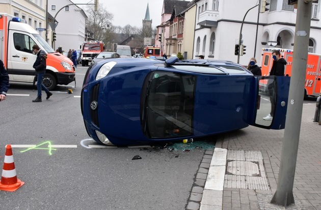 Der Rettungswagen, der mit Signalhorn und Blaulicht unterwegs war, befuhr die Westermannstraße in Richtung Westen. Im Kreuzungsbereich kam es dann zu einem Zusammenstoß mit einem Kleinwagen, der infolge des Zusammenstoßes auf die Seite kippte. Die Pkw-Fahrerin konnte sich selbst aus ihrem Pkw befreien. Der Fahrer des Rettungswagens und die Fahrerin des Kleinwagens wurden zur weiteren Untersuchung in ein Krankenhaus transportiert.