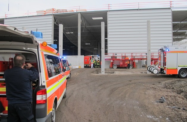 Aus ungeklärter Ursache stürzte am frühen Nachmittag ein 41-jähriger Bauarbeiter bei Dacharbeiten auf einer Großbaustelle für ein neues Logistikzentrum zwölf Meter in die Tiefe und verletzte sich dabei schwer.