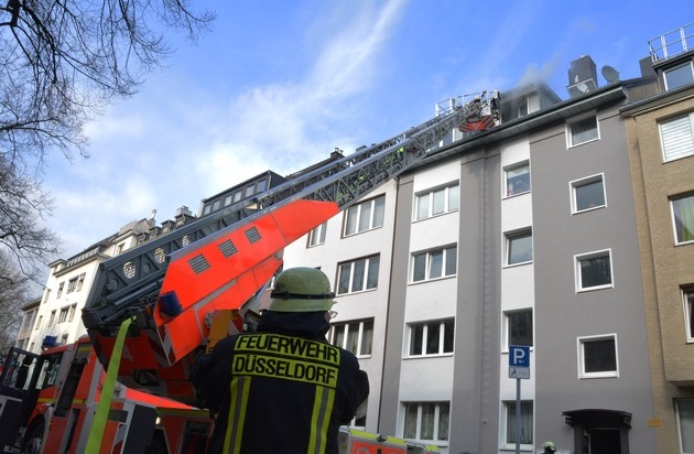 Durch Lärm in ihrer Küche wurde die Eigentümerin der Dachgeschosswohnung in ihrem Arbeitszimmer auf das schon weit fortgeschrittene Feuer an ihrer Küchenzeile aufmerksam. Geistesgegenwärtig alarmierte sie die Feuerwehr und verließ die Wohnung. Dabei schloss sie die Küchentür, welche verhinderte, dass das Feuer und Rauch auf benachbarte Räume übergreifen konnten. Die Wohnungseingangstür ließ sie geöffnet. Die alarmierten Einheiten der Feuerwachen Behrenstraße und Hüttenstraße konnten so schnell in die betroffene Wohnung vorgehen und das Feuer löschen. Währenddessen wurde über die Drehleiter von außen das Fenster geöffnet, um den dichten Brandrauch abziehen zu lassen. Nach weiteren gezielten Belüftungsmaßnahmen, kann die Wohnung durch das Eigentümerehepaar weiter bewohnt werden. Der Einsatz der Feuerwehr Düsseldorf war nach einer guten Stunde beendet. Der Sachschaden wird auf 50.000 Euro geschätzt.