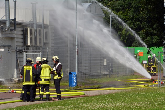 Heute kam es ein Feuerwehreinsatz auf dem Gelände der Universität Düsseldorf. In einem Interimslager für Gefahrgut war es zu einem Temperaturanstieg gekommen. Die Feuerwehr war mit zwei Löschzügen, mehreren Sonderfahrzeugen, dem städt. Rettungsdienst und dem Führungsdienst vor Ort. Um 16.10 Uhr meldete ein Mitarbeiter der Heinrich-Heine-Universität Düsseldorf der Leitstelle der Feuerwehr Düsseldorf, das es in einem Interimslager auf dem Gelände der Universität Düsseldorf zu einem Temperaturanstieg gekommen ist. In diesem Interimslager werden verschiedene Gefahrstoffe gelagert, unteranderem ein organisches Lösungsmittel, dessen Siedepunkt bei 35°Celsius liegt. Erste Messungen ergaben, daß die Temperatur in dem Interimslager bei circa 33°Celsius lag. Die Feuerwehr hat das Interimslager massiv mit Wasser gekühlt, im Einsatz waren zwei Wasserwerfer und ein C-Rohr. Zwei zusätzliche Tanklöschfahrzeuge sind ebenfalls alarmiert worden. Von der Feuerwehr wurden zwei angrenzende Gebäude vorsorglich geräumt. Durch die massive Kühlung liegt die Temperatur derzeit bei ca. 24°Celsius. Es ist zu keiner Zeit zu einer gefährlichen Situation gekommen, da die Feuerwehr frühzeitig von der Universität alarmiert wurde und tätig werden konnte. Der Einsatzleiter lobte ausdrücklich das besonnene Verhalten der Universitätsmitarbeiter. Bei dem Einsatz wurden keine Personen verletzt. Der Feuerwehreinsatz für die 50 Einsatzkräfte war nach rund dreieinhalb Stunden beendet. Die Einsatzstelle wurde der Universität Düsseldorf übergeben, die weitere Maßnahmen einleitet.