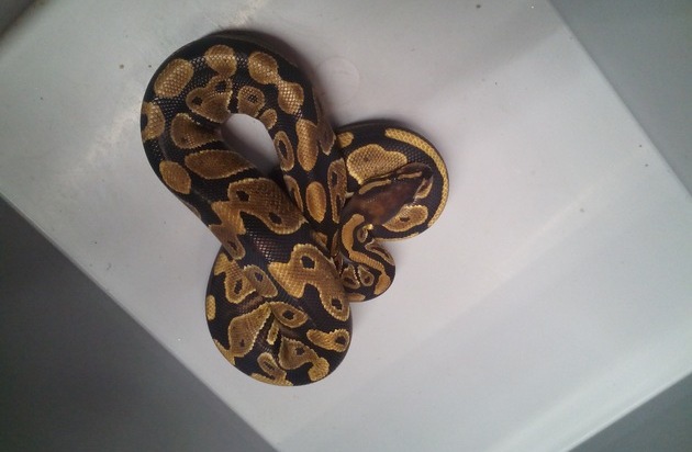 Eine ungefähr 80 Zentimeter lange Königspython befand sich auf der Haustürschwelle eines Mehrfamilienhauses.