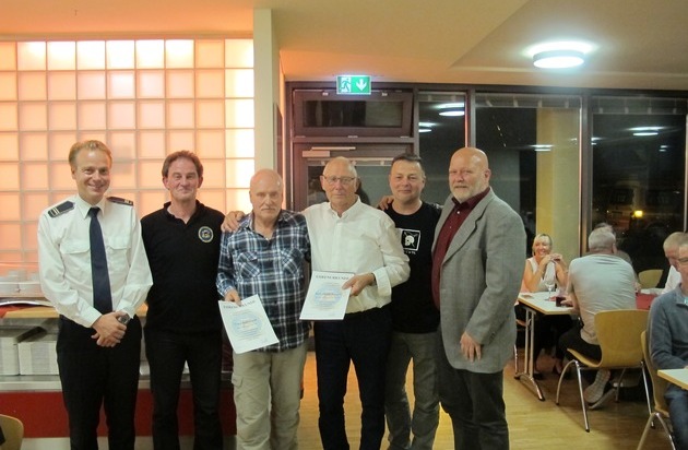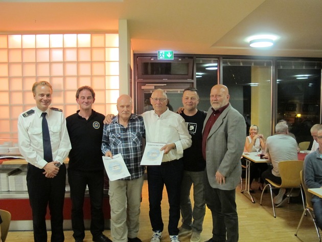Im Anschluss folgte noch eine ganz besondere Auszeichnung: Landessportreferent der Arbeitsgemeinschaft der Berufsfeuerwehren in Deutschland (kurz AGBF genannt) Guido Schmitz aus Aachen hatte noch zwei besondere Ehrungen mitgebracht. So erhielten die beiden Sportler Karl Heinz Kessels aus Düsseldorf und Uwe Sielemann aus Kiel für besondere und lange Verdienste um das Tischtenniswesen das Ehrenabzeichen der Deutschen Feuerwehr Sportförderation!