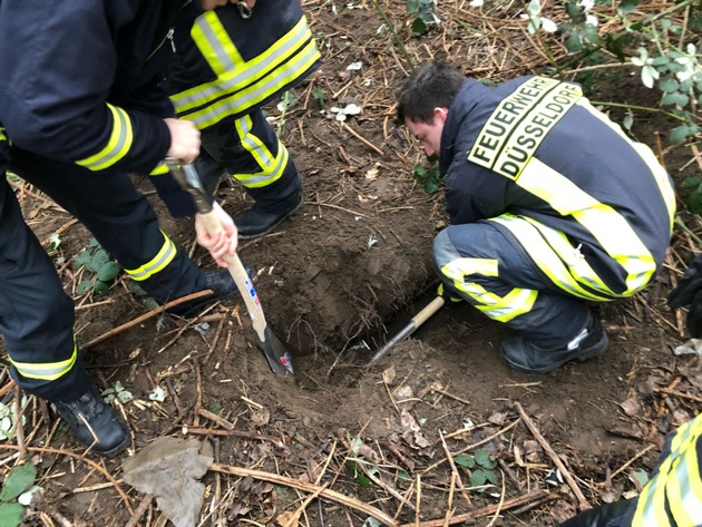 Am Donnerstagnachmittag geriet ein Hund in ein Erdloch in Kaiserswerth. Die Feuerwehr befreite den Dackel unverletzt.