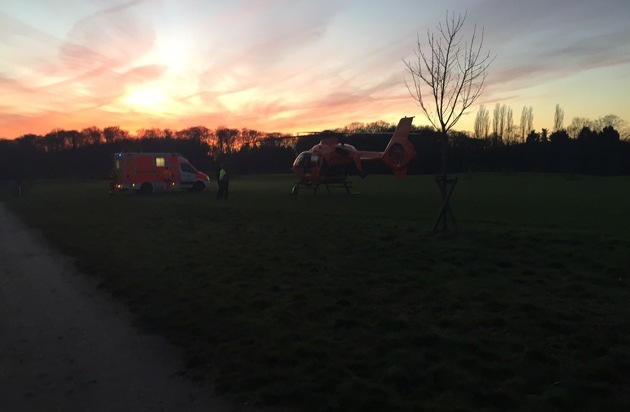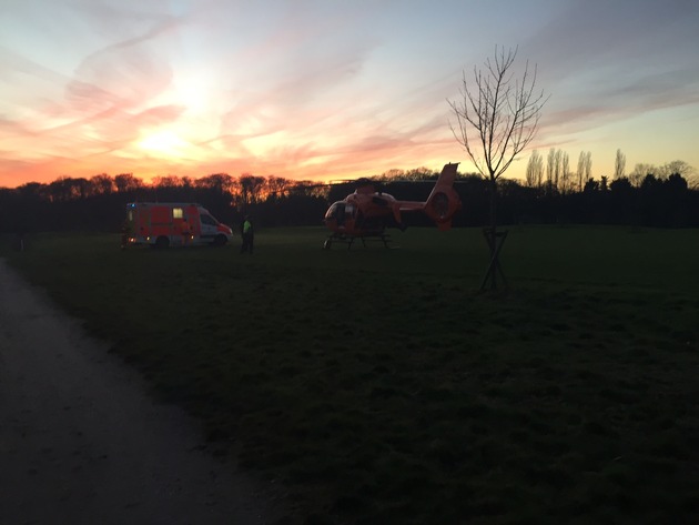 Am frühen Abend wurde der Leitstelle ein Reitunfall mit zwei verletzten Personen in Mülheim-Selbeck gemeldet. Umgehend wurden zu der Unfallstelle zwei Rettungswagen von der Hauptwache und zudem ein Notarzteinsatzfahrzeug entsendet. Zu dem Unfall ist es gekommen, weil die beiden Pferde durchgegangen sind. Eine Reiterin hatte sich dabei so schwer verletzt, dass der Rettungshubschrauber Christop 9 aus Duisburg durch den anwesenden Notarzt nachalarmiert wurde. Des Weiteren rückte der Einsatzleitwagen zur Einweisung des Rettungshubschraubers aus. Die schwerverletzte Person wurde durch den Rettungshubschrauber in eine Klinik nach Düsseldorf geflogen und die andere Person wurde durch den Rettungswagen in ein Mülheimer Krankenhaus transportiert. (DRü)