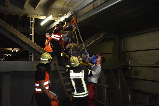 FW-MH: Schweißtreibende Rettungsaktion im Inneren der Ruhrtalbrücke.