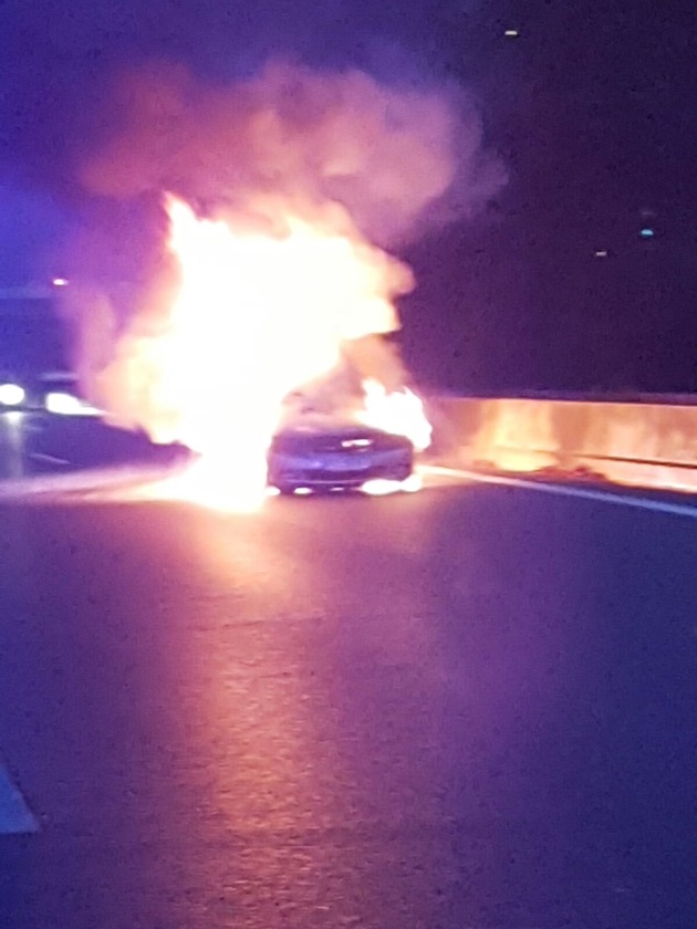 FW-MH: PKW auf der A 40 im Vollbrand.
