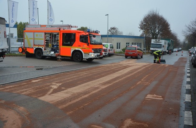 FW-MH: Undichter LKW Tank sorgt für stundenlangen Einsatz der Feuerwehr Mülheim