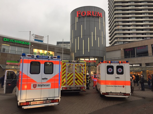 Am heutigen Montag erreichten um 15.13 Uhr mehrere Notrufe die Leitstelle der Feuerwehr. In allen Notrufen wurde geschildert, dass es im Erdgeschossbereich des Forums mehrere Personen mit Atemwegs- und Augenbeschwerden gibt. Aufgrund der hohen Anzahl der Betroffenen wurde sofort das Alarmstichwort MANV (Massenanfall von Verletzten) ausgelöst. Dadurch wird eine Alarmierungskette ausgelöst, welche eine Vielzahl von Einsatzkräften und Rettungsdienstfahrzeugen sowie Notärzte alarmiert. An der Einsatzstelle wurde festgellt, dass in einer Filiale Reizgas versprüht wurde. Der Einsatzbereich im Forum wurde großflächig abgesperrt. Im weiteren Verlauf wurde das Forum geräumt. Insgesamt waren 22 Personen leicht verletzt. Eine Person musste ins Krankenhaus gefahren werden. Weitere 21 Personen wurden rettungsdienstlich und notärztlich versorgt. Nach intensiven Lüftungsmaßnahmen konnte das Forum nach zirka einer Stunde wieder freigegeben werden. Die Polizei hat die Ermittlungen aufgenommen. (TDr)
