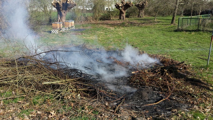 Nach kurzer Zeit wurde die Ursache im Bereich Baakendorferstraße ermittelt. Hier hatte ein Anwohner, unerlaubter Weise, große Mengen Grünabfälle/Grünschnitt verbrannt. Der Anwohner wurde aufgefordert, das Feuer unverzüglich zu löschen und darüber informiert, dass das verbrennen von Grünschnitt und ähnlichem verboten ist.