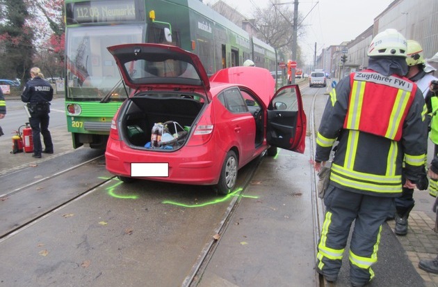 Am Dienstagmittag wurde die Berufsfeuerwehr Mülheim an der um 13:41 Uhr zu einem Verkehrsunfall in die Friederich-Ebert-Straße gerufen. Im Bereich der Kreuzung Friedreich-Ebert-Str. / Sandstraße kollidierte ein PKW beim Abbiegen mit der Straßenbahn. Von den ca. 50 Fahrgästen wurde glücklicherweise niemand verletzt. Der Fahrer des PKW konnte nach kurzer Untersuchung durch den Rettungsdienst ebenfalls unverletzt die Einsatzstelle verlassen.