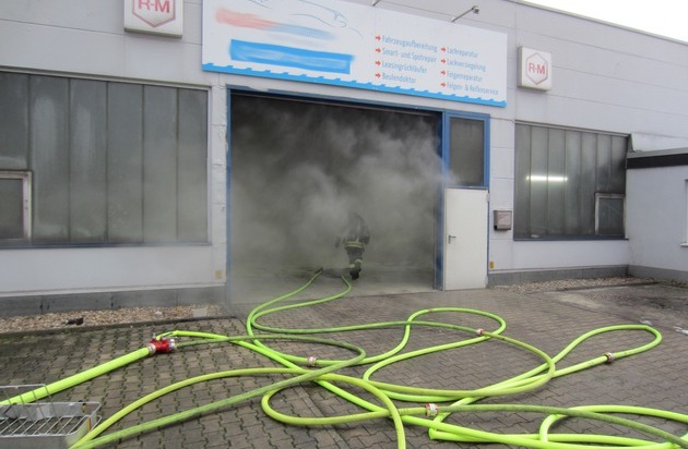 FW-MH: Brand in Lackierkabine /Zwei verletzte Personen