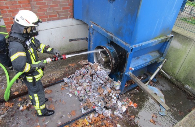 FW-MH: Brand in einer Altpapierpresse in Mülheim Styrum