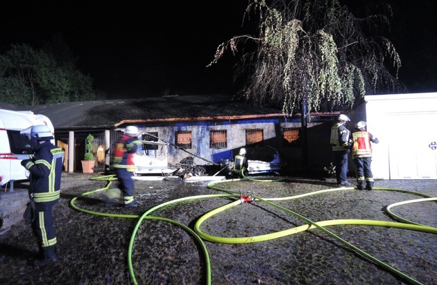 FW-BN: Wohnwagenbrand drohte aufs Haus überzugreifen, Bewohner brachten sich in Sicherheit