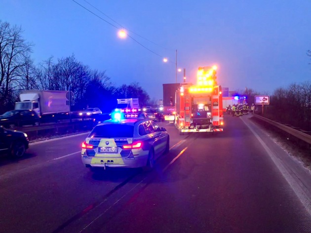 Bonn, BAB 565 Fahrtrichtung Koblenz, 27.02.2018, 06:36 Uhr - Gegen 06:35 Uhr ereignete sich auf der BAB 565 im Bereich der Nordbrücke ein Verkehrsunfall zwischen einem Kleintransporter und einem LKW. Der Fahrer des Kleintransporters konnte sich nicht mehr selbstständig aus seinem Fahrzeug befreien. Die ursprünglich bei Feuerwehr und Rettungsdienst eingegangene Meldung, dass die Person im Fahrzeug eingeklemmt sei, bestätigte sich glücklicherweise nicht. Der leichtverletzte Fahrer wurde unter Beteiligung des Notarztes aus dem Fahrzeug gerettet. Anschließend ist er in ein Bonner Krankenhaus transportiert worden. Der Fahrer des LKW blieb unverletzt. Während der Einsatzmaßnahmen und zur anschließenden Unfallaufnahme durch die Polizei war die BAB 565 in Fahrtrichtung Koblenz nur einspurig befahrbar. Im Einsatz waren der Einsatzführungsdienst, Lösch- und Rüsteinheit der Feuer- und Rettungswache 1, sowie der Rettungsdienst.