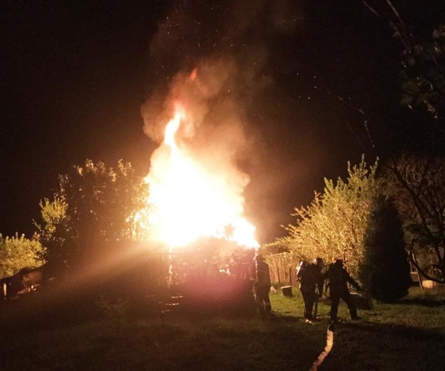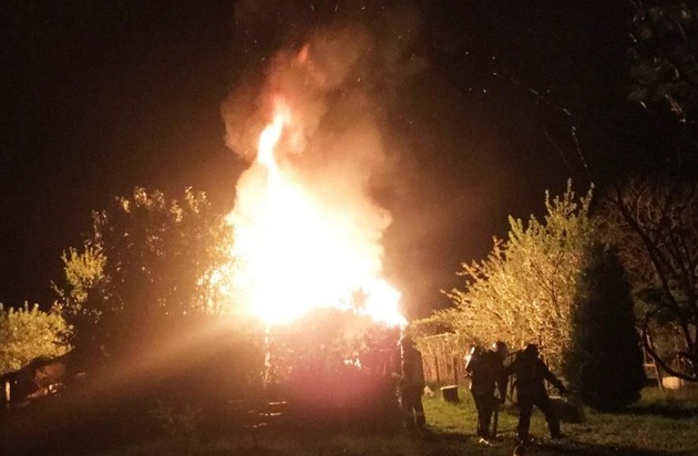 20.04.2018, Karl-Hoch-Straße. Bei einem Gartenlaubenbrand in Graurheindorf am frühen Freitagmorgen konnte der Totalverlust des Objekts nicht verhindert werden.