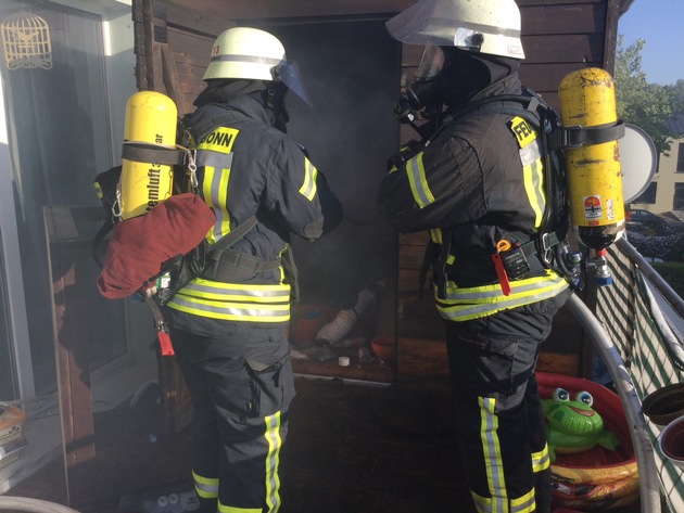 Nachdem sich am Vormittag zwei Alarmierungen durch automatische Brandmeldeanlagen als Fehlalarme herausgestellt hatten, mussten die Kräfte an anderen Einsatzstellen im Stadtgebiet tätig werden. Auf der Aennchenstraße in Bad Godesberg brannte es um 11:30 Uhr in einer Küche im Erdgeschoss. Die Bewohnerin konnte sich mit ihrem Kleinkind unverletzt ins Freie retten. Das Feuer wurde schnell unter Kontrolle gebracht, sodass die Mieterin nach Abschluss der Maßnahmen wieder in die Wohnung zurückkehren konnte. Parallel rückte die Löscheinheit der Feuerwache 1 nach Poppelsdorf aus. Die brennende Holzverkleidung eines außenliegenden Schrägaufzuges auf der Trierer Straße konnte mittels Kleinlöschgerät zügig abgelöscht werden. Am Nachmittag meldeten Bewohner eines Mehrparteienhauses auf der Beueler Johannesstraße eine Rauchentwicklung und Brandgeruch im 6. Obergeschoss. Die Kräfte der Wache 2 verschafften sich gewaltsam Zutritt zur Wohnung und konnten auch hier ein Brandereignis in der Küche lokalisieren. Löschmaßnahmen waren nicht mehr erforderlich. Personen kamen nicht zu Schaden. Um 19:06 Uhr gingen mehrere Notrufe in der Leitstelle der Feuerwehr ein. Die Anrufer berichteten von einem Feuer auf der Mörikestraße in Dransdorf. Auf einem Balkon im ersten Obergeschoss brannte ein in Holzbauweise errichteter Geräteschuppen. Die anwesenden Bewohner konnten sich auch hier rechtzeitig in Sicherheit bringen. Zur Brandbekämpfung wurde ein Rohr vorgenommen. Die in Stellung gebrachte Drehleiter brauchte nicht mehr eingesetzt werden. Kurz vor 21:00 Uhr erfolgte dann die Alarmierung der Feuerwehr in ein Alten- und Pflegeheim in Bonn-Castell. Bei Eintreffen konnte eine Verrauchung des Treppenraumes ab dem 4. Obergeschoss festgestellt werden. Ein Kleinbrand in einem Bewohnerzimmer war vom Pflegepersonal bereits gelöscht worden. Die Bewohnerin blieb unverletzt. Durch die Feuerwehr wurden Nachlöscharbeiten durchgeführt sowie der Treppenraum und der betroffenen Flur belüftet. Der Rettungsdienst sichtete zwei Personen, der Transport in ein Krankenhaus war allerdings nicht erforderlich. Die frühzeitige Alarmierung durch die Brandmeldeanlage des Objekts sowie das schnelle Eingreifen der Feuerwehr aber auch die eingeleiteten Erstmaßnahmen des Pflegepersonals verhinderten hier einen Personen- und Sachschaden.