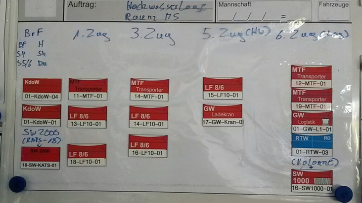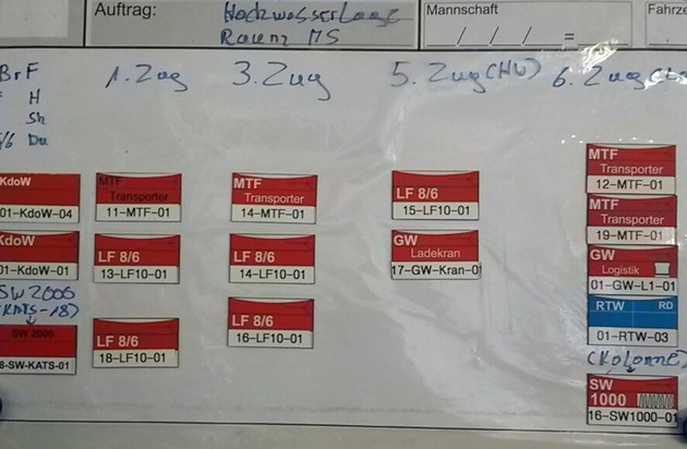 Derzeit läuft eine Großübung der Bottroper Feuerwehr. Dazu wurden alle Freiwilligen Feuerwehren und die dienstfreien Kräfte der Berufsfeuerwehr alarmiert. Ziel der Übung ist es, die Abläufe bei einem Einsatz im Rahmen der sogenannten "Vorgeplanten Überörtlichen Hilfe" (VÜH) zu trainieren. Die VÜH dient dazu, bei Katastrophen im Regierungsbezirk Münster überörtlich Hilfe zu leisten. Die Feuerwehr Bottrop stellt zusammen mit der Feuerwehr Borken eine sogenannte "Bereitschaft". Angenommen wurde eine Hochwasserlage im Münsterland. Um 09.00 Uhr ging bei der Leitstelle der Feuerwehr Bottrop die Anforderung für die VÜH-Bereitschaft Bottrop/Borken ein. Zielort ist Raesfeld. Die geplante Einsatzdauer beträgt 12 Stunden. Daraufhin wurden zunächst die Führungskräfte der Feuerwehr alarmiert. Diese erhielten an der Feuerwache I (FW I) die nötigen Informationen. Anschließend wurde Vollalarm für die Freiwilligen Feuerwehren gegeben. Derzeit sammeln sich die Kräfte der Freiwilligen Feuerwehr an den Gerätehäusern. Dabei wird abgefragt, welche Kräfte für die Zeit zur Verfügung stehen. Im Anschluss werden sich die Kräfte an der FW I sammeln und im Verband nach Dorsten fahren. Dort findet die Zusammenführung der Teileinheiten aus Bottrop und Borken zur Bereitschaft statt. Anschließend wird die Bereitschaft nach Raesfeld fahren, wo geprüft wird, ob auch die Verpflegung der Einsatzkräfte funktioniert. Anschließend ist die Übung beendet und die Einsatzkräfte können zurück nach Bottrop und Borken fahren. Nach Abschluss der Übung wird eine weitere Pressemitteilung erfolgen.
