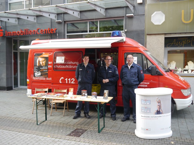 Diese Fragen können Sie am Freitag, den 13 Juli, den Mitarbeitern des Vorbeugenden Brandschutzes stellen. Diese werden von 10.00 - 14.00 Uhr vor dem Immobiliencenter der Sparkasse an der Hochstraße bereitstehen. Neben der Möglichkeit des direkten Gesprächs, erhalten Sie hier Informationsmaterial zu allen Fragen rund um Rauchmelder. Der Förderverein der Jugendfeuerwehr Bottrop wird Rauchmelder zum Verkauf anbieten, zudem besteht die Möglichkeit, am Glücksrad einen Rauchmelder zu gewinnen.