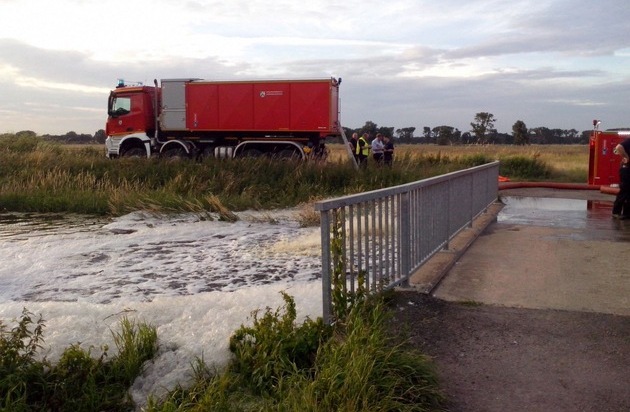 Hochleistungspumpe unterstützt bei Umweltalarm in Minden-Lübbecke: An der Bastau, einem Nebenfluss der Weser, sind derzeit auch Einsatzkräfte der Feuerwehren aus dem Kreis Paderborn mit einem Spezialfahrzeug im Einsatz.