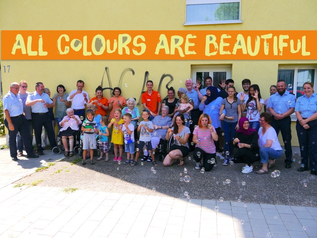 Hass, Provokation oder Wut könnten Auslöser einer Graffitischmiererei am Dienstgebäude der Bundespolizeiinspektion Stuttgart in der Martha-Schmidtmann-Straße sein. Bislang unbekannte Täter besprühten am Samstag (29.07.2017) in der Zeit von 07:00 bis 17:00 Uhr die Außenwand des Gebäudes mit schwarzer Farbe auf einer Fläche von etwa 1,5 qm mit dem Schriftzug "A.C.A.B.". Theoretisch sind viele Interpretationen dieser Buchstabenkombination möglich, jedoch sind die Initialen hinreichend bekannt und durch mehrere Gerichtsurteile bereits bestätigt worden - gerade vor dem Hintergrund, dass es sich hierbei um ein Gebäude der Polizei handelt. Der Leiter der Bundespolizeiinspektion Stuttgart, Herr Polizeidirektor Reinhard Pürkenauer, stellte klar, dass es sich bei der Farbschmiererei um eine Straftat handelt, welche gemäß § 303 Strafgesetzbuch (Sachbeschädigung) verfolgt und geahndet wird. Polizeibeamten gegenüber ausgesprochen, erfüllen die vier Buchstaben den Straftatbestand der Beleidigung. Pürkenauer weiter: "Wir interpretieren den Schriftzug an unserem Dienstgebäude bewusst weitblickend und auf unsere eigene Art und Weise - vielfältig, offen und vor allem bunt". "All Colours are Beautiful" waren die ersten Worte des Inspektionsleiters zu der Graffitischmiererei: "Wir setzen ein Zeichen für die Vielfältigkeit und Toleranz". Gemeinsam mit Menschen aller Altersstufen des Anna Haag Mehrgenerationenhauses machten Polizeibeamte der Bundespolizeiinspektion Stuttgart bei herrlichem Sonnenschein und sommerlichen Temperaturen am Dienstagnachmittag (01.08.2017) vor dem Schriftzug ein Foto im Zeichen der bunten Vielfalt. Das Anna Haag Mehrgenerationenhaus ist seit mehr als 60 Jahren das ältestes Mehrgenerationenhaus Deutschlands und weit über die Stadtgrenzen Stuttgarts bekannt. Und nicht nur das: Es ist vor allem auch ein unmittelbarer Nachbar der Bundespolizeiinspektion Stuttgart. Der Idee einer "Großfamilie" folgend, vereint das Anna Haag Haus eine Bildungsstätte, ein Seniorenzentrum und eine Kindertagesstätte unter einem Dach. Und so waren neben Senioren, Auszubildenden und Kindern auch die Geschäftsleitung des Anna Haag Hauses bei diesem besonderen Fototermin dabei. Für die Kleinen gab es im Anschluss noch eine besondere Überraschung: Sie haben einen exklusiven Einblick in die Einsatzfahrzeuge der Bundespolizei erhalten und durften sich selbst hinters Steuer setzen.