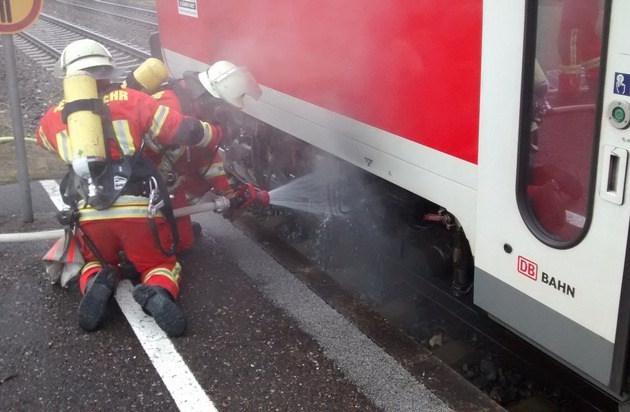 Gegen 06:00 Uhr bemerkte der Zugführer während der Fahrt eine starke Rauchentwicklung an seinem Fahrzeug. Er brachte den Zug daraufhin unplanmäßig am Haltepunkt Welschingen-Neuhausen zum Stehen und entdeckte einen Brand im Bereich einer Zugbremse. Unter Einsatz zweier Feuerlöscher konnte dieser aber umgehend gelöscht werden.