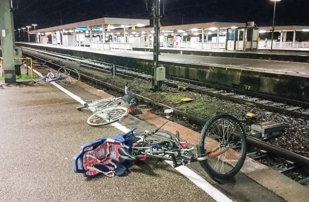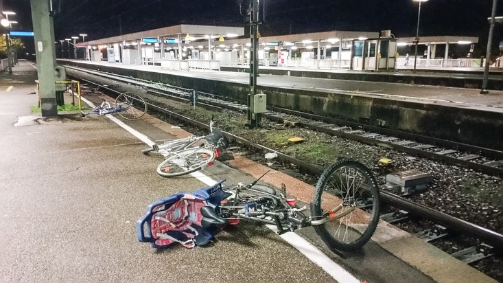 BPOLI-KN: Bahnhof Radolfzell: 15 Fahrräder beschädigt und sechs weitere auf die Gleise gelegt