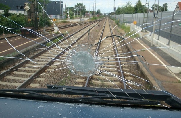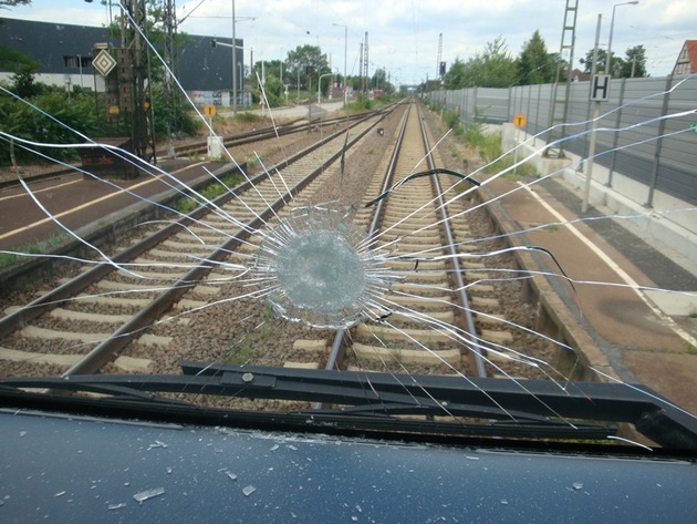 Bereits am 23. Juli gegen 11:25 Uhr warfen zunächst unbekannte Täter auf der Strecke der Deutschen Bahn AG zwischen Hirschacker und Mannheim-Rheinau ein Gussmetallrohr über die Oberleitung. Das Rohr war an einem Videoband befestigt und ragte deutlich in den Gleisbereich. Eine Regionalbahn erfasste mit ca. 140 km/h diesen Gegenstand, der in die Scheibe des Triebwagens einschlug. Die Frontscheibe im Bereich des Führerstandes wurde hierbei stark beschädigt, glücklicherweise jedoch nicht durchschlagen. Der Triebfahrzeugführer wurde leicht verletzt. Der Sachschaden beträgt ca. 2.300 EUR. Der betroffene Gleisabschnitt war über zwei Stunden gesperrt.