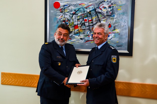 Der stellvertretende Leiter der Bundespolizeiinspektion Weil am Rhein, Erster Polizeihauptkommissar Johann Degenhart, scheidet nach Erreichung der gesetzlichen Altersgrenze aus dem aktiven Polizeidienst aus.